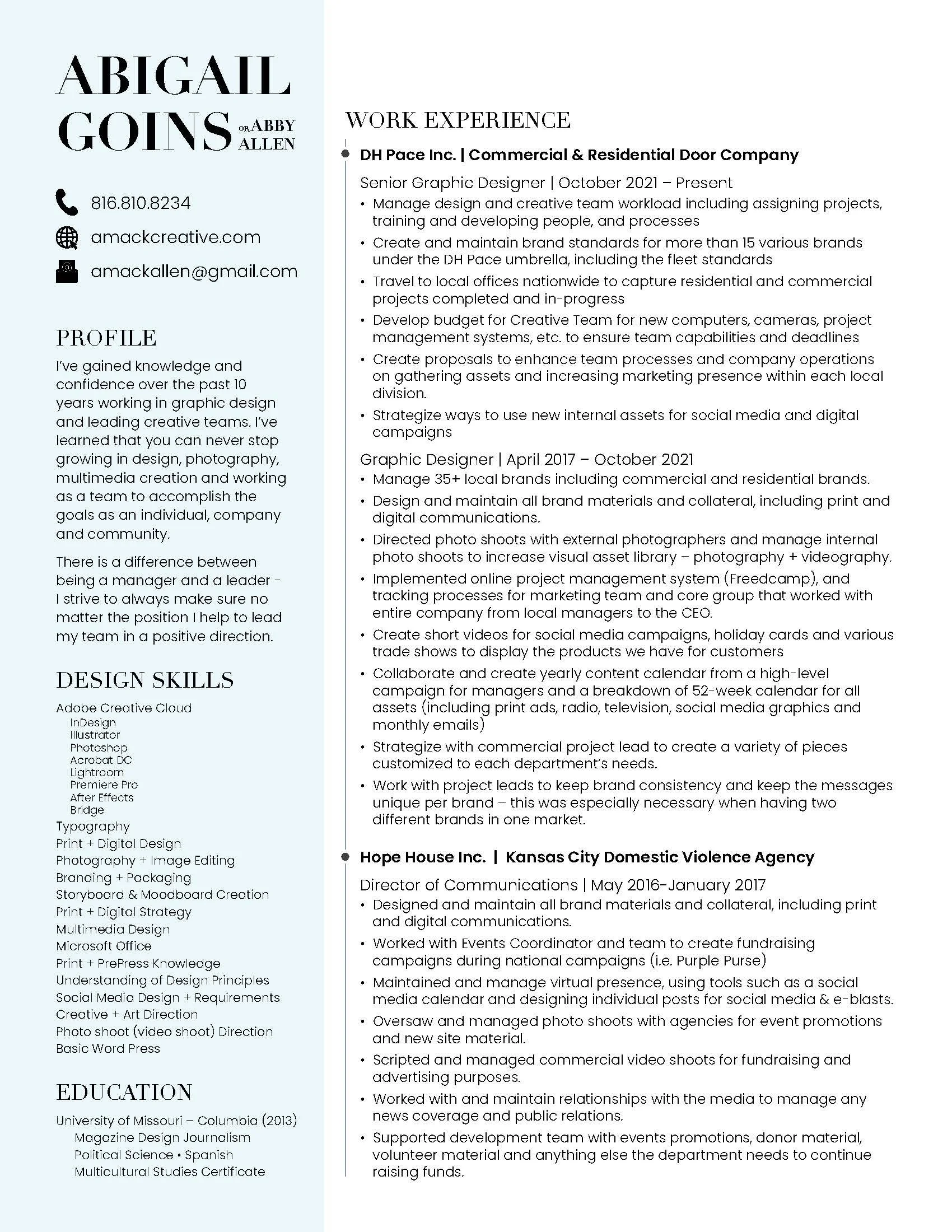 Abigail Allen’s work has been proven to be creative, and effective. She is able to meet the needs of all her clients, while still keeping in mind their brand standards. Her creativity would be an asset to any project and would help teams grow.